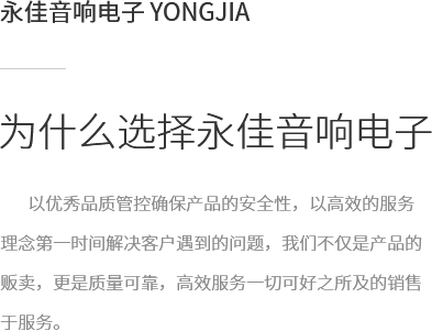 拉薩永佳音響電子有限公司 拉薩永佳音響電子有限公司坐落于美麗富饒的圣城拉薩,公司前身為拉薩昊成音響電子銷售有限公司,注冊資金為300萬元,成立于2010年3月公司地址位于西藏拉薩市貢布塘南側(cè)1號薩博廣場4-5、4-8號。拉薩永佳音響電子有限公司主營專業(yè)舞臺音響設(shè)備、會議音響系統(tǒng)設(shè)備、公共廣播音響系統(tǒng)設(shè)備、網(wǎng)絡及監(jiān)控設(shè)備、多媒體教學設(shè)備、多媒體投影機、幕布、弱電線材、辦公設(shè)備、LED液晶顯示屏品種齊全、服務效率、拉薩